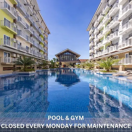 ベッドルーム1室のAmani 132B With Pool View, Near Airport, Mall, Free Pool, Gym, Netflix, 200 Mbps Wi-Fi マクタンアパートにはテラスがあり、マクタン・チャンネルから3.5キロメートルに位置しています。 ビジネスやレジャーのお客様のニーズに合わせて、WiFiを提供しています。